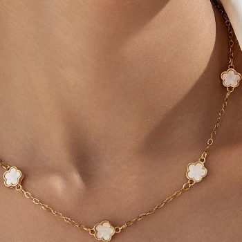 Fleepmart Fashion Classic colorful Jewelry Alloy Five Leaf Clover Pendant Necklace Female Tail Chain Adjustable Holiday Party Gift