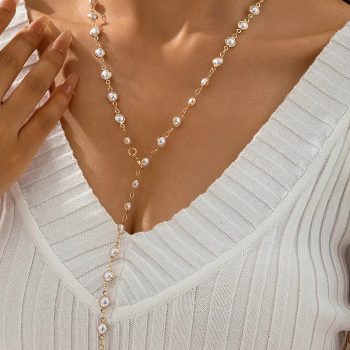 Fleepmart New Pearl Pendant Necklace for Women Luxury Exquisite Long Y-shaped Chain Choker Elegant Romantic Vintage Jewelry Gift