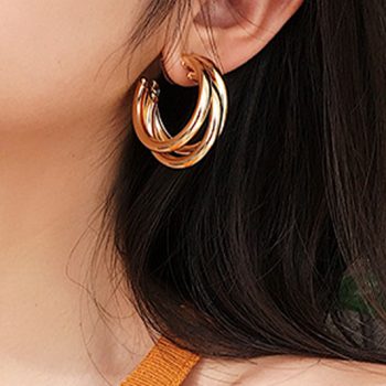 fleepmart Fashion Korean Metal Elegant Hoop Earring Woman 2021 New Vintage Gold Color Geometric Statement Earrings Jewelry Brincos Gift