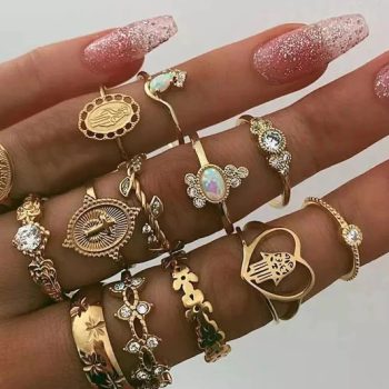 15pcs/set Bohemian Gold Virgin Mary Heart Flower Kunckle Midi Ring Set for Women Crystal Geometric Jewelry Anillo