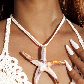 Fleepmart Bohemian Minimalist Starfish Pendant Necklace White Rope Collarbone Chain Women Beach Vacation Accessories Jewelry