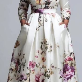 Fleepmart Women Elegant Printed A Line Dress O Neck 3/4 Sleeve High Waist Vintage Floral Pleated Autumn Winter Office Ladies Daily Outfit