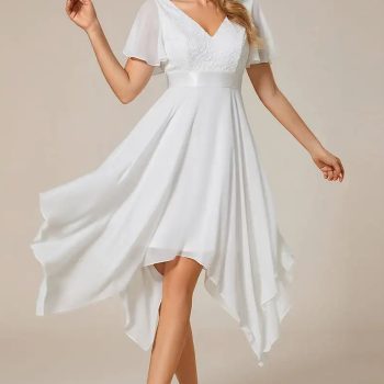Fleepmart Elegant Evening Dresses Deep V Neck Short Sleeves Back hidden zipper 2024 A-line White Cocktail party