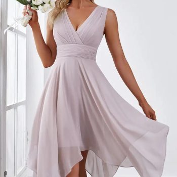 Fleepmart Elegant Evening Dress Glamorous Double V-Neck Ruffles Padded 2024 of White High and low hem Bridesmaid Dresses