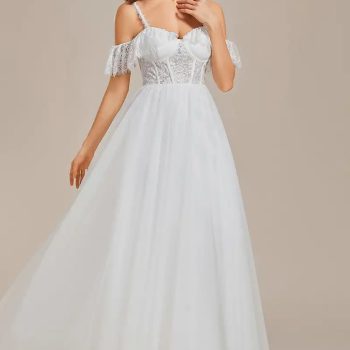 fleepmart Elegant Wedding Dresses Spaghetti Straps See-Through Lace Tulle Sleeveless 2024 White Prom Women Formal Dresse