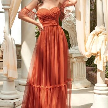 Fleepmart Elegant Evening Dress Tulle Strapless A-Line Ruffles Sleeves Floor Length Backless Ever Pretty 2024Prom Dresses Vestidos De Gala