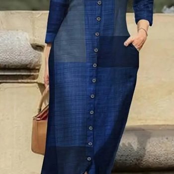 Fleepmart Women’s Cotton Turn-Down Collar Long Dress Holiday Casual Floral Print Button-Down Shirt Style Maxi Dress