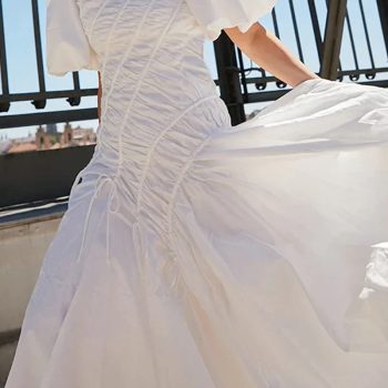 Fleepmart Solid Spliced Folds Irregular Long Dresses for Women Round Neck Short Sleeves Tunic Temperament Dress Female New