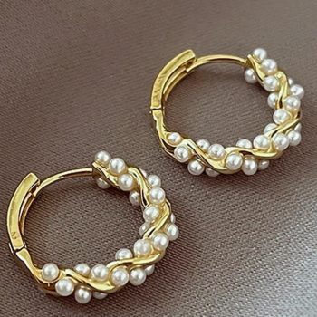 Fleepmart French Imitation Pearl Circle Earring Small Round Hoop Earrings For Women Exquisite Texture Earrings Jewelry Girls Gift