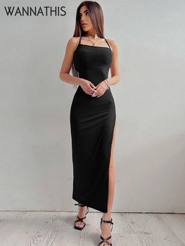 WannaThis Knit Backless Lace Up Sundress Women Sleeveless Bodycon High Split Ankle-Length Dresses Sexy Party Outfits Beachwear