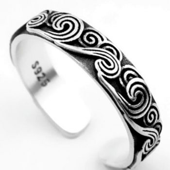 Fleepmart Ethnic Retro Good Luck Cloud Wave 925 Sterling Silver Female Resizable Opening Rings