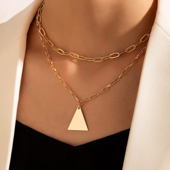 Fleepmart INS Trendy Triangle Pendant Neckalce for Women Charms Multilayer Geometry Alloy Metal Adjustable Jewelry Collar