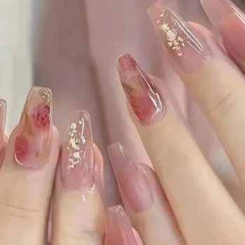 Fleepmart 24Pcs/Set Long T Glitter Wearing Reusable False Nails Nail Art Full Cover Artificial Fake Nails Ballerina False Nail