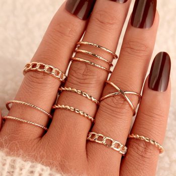 Fleepmart Bohemian Gold Chain Rings Set For Women Fashion Boho Coin Snake Moon Rings Party 2022 Trend Jewelry Gift