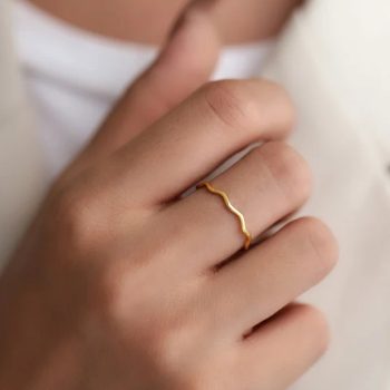 Fleepmart Stainless Steel Ring Minimalist Sea Wave Light Luxury Elegant Ring Women Jewelry