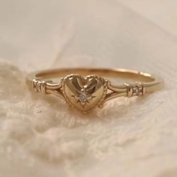 Fleepmart Gold Plated Stainless Steel Ring Women Heart Ring Jewelry Accessories Size 6-11
