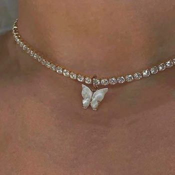 Fleepmart Pendant Choker Necklace Rhinestone Chain White Pink Color Acrylic Simple Clavicle Necklace Animal Fashion Jewelry