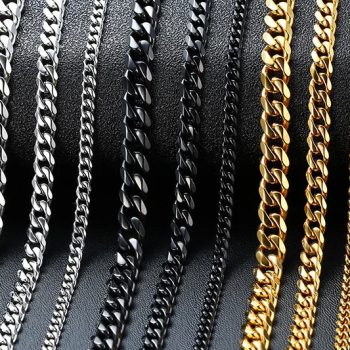 Vnox Cuban Chain Necklace for Men Women,Basic Punk Stainless Steel Curb Link Chain Chokers,Vintage Gold Color Solid Metal Collar