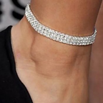 Fleepmart New Silver Color Stretchy Rows Bracelet Anklet Ankle chain Rhinestones Foot Jewelry