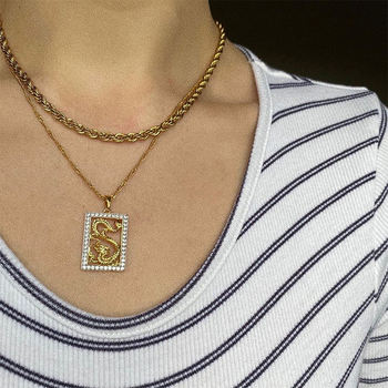 Fleepmart 2Pcs/Set Women Classic Necklace Crystal Beaded Dragon Totem Pendant Gold Color Double Necklace Ladies Fashion Beach Jewelry