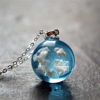 Fleepmart Women Necklaces Creative Handmade Blue Sky Cloud Transparent Ball Pendant Necklace Charm Party Jewelry Accessories Length 50+5CM