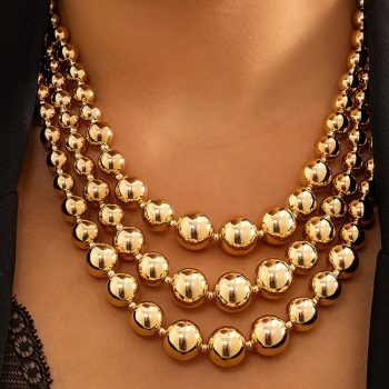 fleepmart Vintage Exaggerated Plastic Big Ball Choker Necklace for Women Multi Layered Chunky Thick Clavicle Necklaces Jewelry
