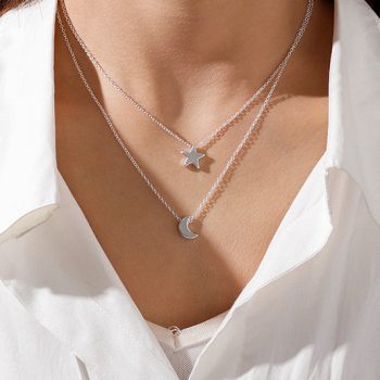 Fleepmart Jewelry Star Moon 2 layer Choker Necklace Clavicle Chains Charm Womens Fashion Jewelry Collar Maxi Necklace For Women