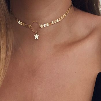 Fleepmart Simple Star Sequins Choker Necklace Clavicle Circle Chains Charm Fashion Jewelry Collar Maxi Necklace Women