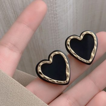 Fleepmart 2022 New Trendy Simple Heart Stud Earrings For Women Girls Temperament Vintage White Black Color Earring Party Jewelry Gifts