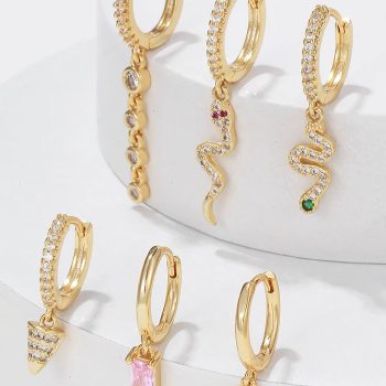 Fleepmart 2pcs Gold Plated Stainless Steel Cute Circular Cone Hoop Earrings For Women Snake Chain Zircon Piercing Huggies Fashion Jewelry