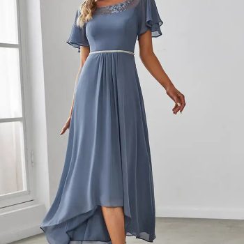 Fleepmart Elegant Evening Dresses Long O-Neck Women’s Casual Boat Neck A-Line Midi Dress 2024 Simple Bridesmaid Women Dress