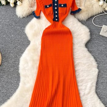 Fleepmart Chic Fashion Sexy Packages Knitted Maxi Dress Spring Summer Vintage Denim Patchwork Long Sweater Dress Lady Vestidos