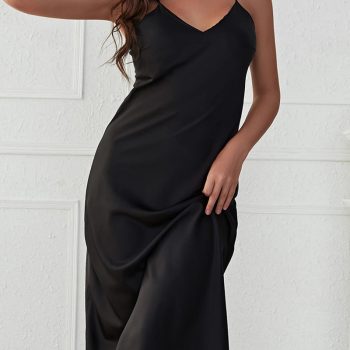 fleepmart Solid Satin Draped Collar Nightdress Criss Cross Back Spaghetti Strap Sleep Dress Women’s Sleepwear Dresses
