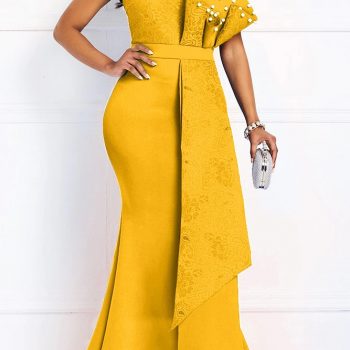 Fleepmart Yellow Dress Long For Women Off Shoulder Sexy Mermaid Beads Skinny Prom Floor Length Evening Dinner Wedding Party Maxi Dresses