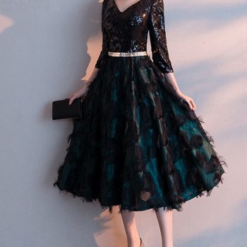 Fleepmart Prom Dress For Women Plus Size Formal Gowns Elegant Half Sleeve Knee-Length Black V-neck Vestidos De Gala