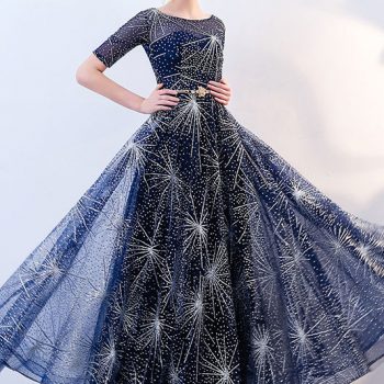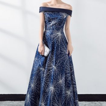 Ladybeauty 2021 Navy blue Luxury Satin Lace Flower Long Evening Dress The Princess Married Banquet Party Prom Dress