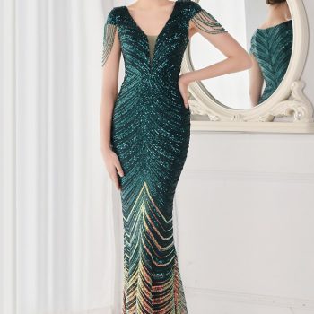 Fleepmart 2022 New Women Elegant V-Neck Beading Floor-Length Formal Evening Dress Sexy Mermaid Sequin Luxury Party Maxi Dress Vestidos