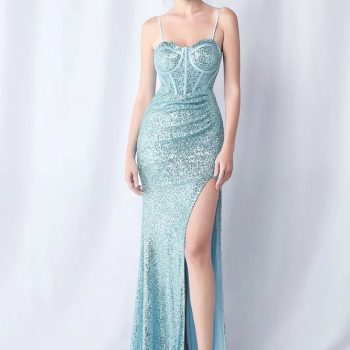 Fleepmart Women Strap Party Maxi Dress Sexy Blue Sequin Evening Dress Long Prom Dress