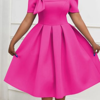 Fleepmart Women Prom Party Dress Bowtie Short Sleeve Pleated Fit and Flare Princess Elegant Formal Birthday Event Gowns Plus Size New