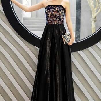 Fleepmart New Arrival Color sequins Evening Empire Dresses Long Elegant Women Strapless Pageant Dress Cheap Prom Party Gown