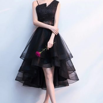 Fleepmart Robe de soiree New Black Elegant Sleeveless lace vestido de festa evening dress Short Front Long Back Party Dresses Prom dresses