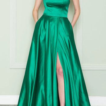 Fleepmart One Shoulder Green Prom Maxi Dress Front Slit Sleeveless Elegant A Line Ball Gown With Pockets