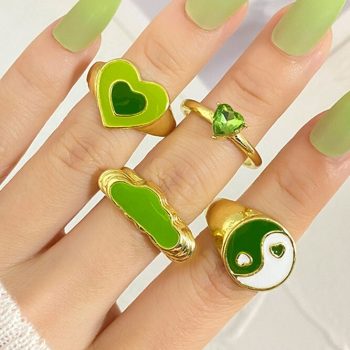 Fleepmart Green Clouds Heart Geometric Joint Ring Set for Women Vintage Golden Metal Tai Chi INS Style Love Ring Fashion Girls Jewelry
