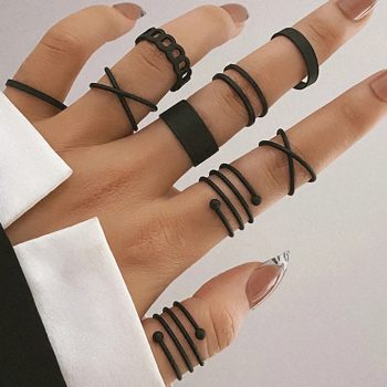 Fleepmart Punk Gothic Black Finger Knuckle Ring Set For Women Vintage Minimalist Geometric Chain Wide Ring Fashion Jewelry Gift