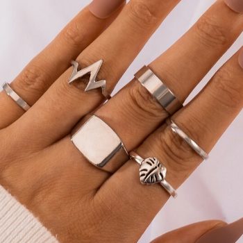 Fkeepmart Charms 6pcs/sets Silver Color Wave Joint Ring for Women Trendy Leaf Geometric Party Bohemian Jewelry Accessories 16155