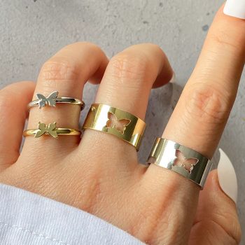Fleepmart 2Pcs/Set Butterfly Couple Adjustable Opening Ring Set for Women Men Unisex Gold Silver Color Metal Rings Trendy Jewelry