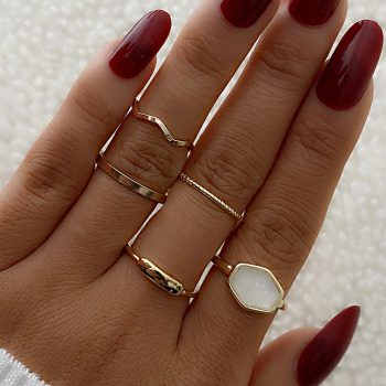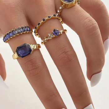 Fleepmart New Fashion Trend Unique Design Light Luxury Retro Blue Crystal Ring 5 Pieces Ring Female Jewelry Party Premium Gift Wholesale