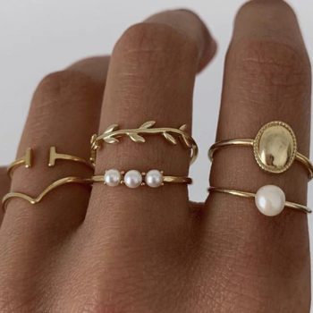 Fleepmart Bohemian Gold Pearl Leaf Joint Ring Set for Women Vintage Geometric Finger Knuckle Rings Fashion Jewelry Party Gift