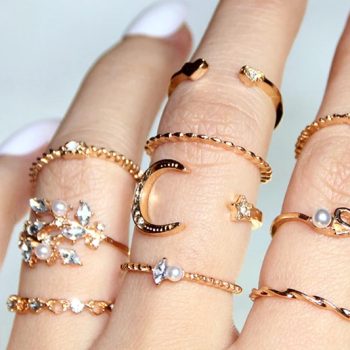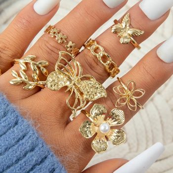 Fleepmart Fashion Gold Color Flower Heart Ring Sets for Women Classic Butterfly Moon Finger Ring Jewelry Party 8pc/set