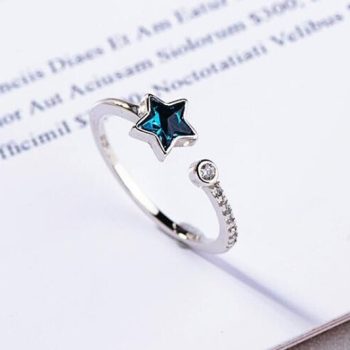 Fleepmart New Fashion Beautiful Deep Sea Blue Five-pointed Star Silver Plated Jewelry Personality Fresh Crystal Opening Rings
